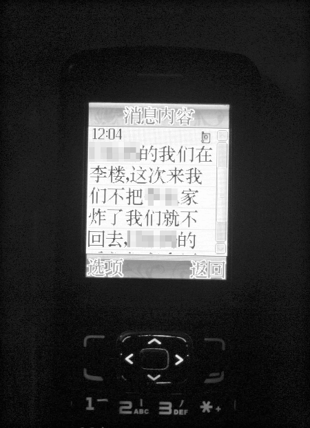 在陳志德手機里,有多條張松才發的信息:“告訴陳曉麗我要把她的照片全部發到網上,讓她狗日的沒臉見人”;“我現在就在鎮上,我這次來不把你們陳家給炸了,我就不回去”。