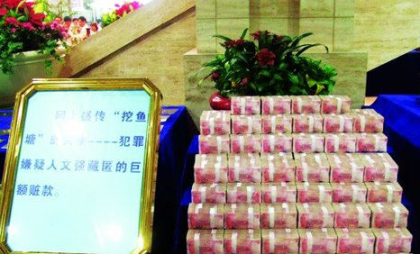 重慶打黑成果匯報展上,展出魚塘挖出的成捆現金。(資料圖)
