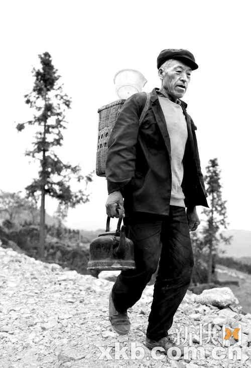 上山途中,記者遇到了下山背水的熊必州老人。年過七旬的他背著一只塑料油桶,手拎一只水壺,緩緩地走下來。他告訴記者,山上今天分水了,但只夠老倆口吃喝,他要從小路下山到一個高梗田邊,從水溝里打點人家排出來的臟水,背來給家里的兩頭牛喝。這一來一去,至少要5個小時。老人笑著,“沒事的,慢慢爬,累了就歇一下。”