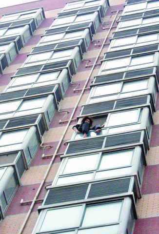 大河網消息 昨天早上,一名同性戀女子從廣東來漯河尋找女友受阻后,便爬上鬧市區一酒店7樓后關上房門,雙腳懸空欲從窗臺跳下尋死。一組由消防隊員和民警組成的施救人員,站在云梯上升空到女子的高度時,苦苦勸說分散其注意力;另一組施救人員則打開房門,乘其不備將其從窗臺強行救下。