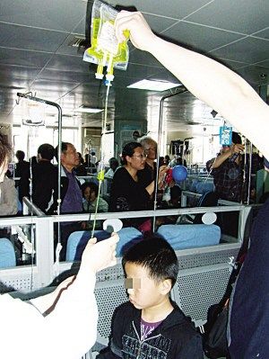 腹瀉患兒在徐州市二院打點滴。