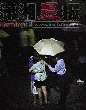 青年男女雨中忘情擁吻 保安撐傘守護獲稱贊(圖)