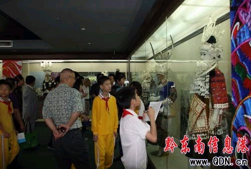 開幕式結(jié)束后領(lǐng)導(dǎo)和觀眾興致勃勃的參觀了展覽。解說員為參觀者們詳細(xì)講解了我州展出服飾的特點和歷史背景。此次民族服飾展共展出了我州10個世居民族的60余套近800件服飾、銀飾、刺繡展品,展期為一個月. 展品種類繁多,彩紛呈,這些積聚民族性、多樣性、實用性、區(qū)域性特點的民族服裝服飾為海內(nèi)外來賓展現(xiàn)出了我州一幅幅獨具風(fēng)情的民族山鄉(xiāng)畫卷,給參觀者留下了深刻的印象。