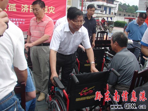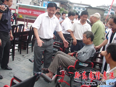 貴州省民政廳廳長丁治學在現場看望殘疾人員