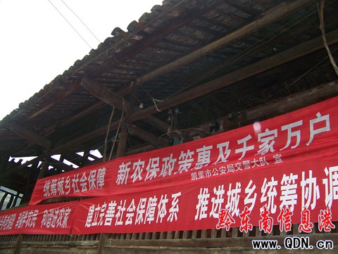 此次宣傳活動(dòng)發(fā)放新型農(nóng)村社會(huì)養(yǎng)老保險(xiǎn)宣傳資料500份,逐戶(hù)調(diào)查登記,收到了良好的宣傳效果。對(duì)2009年度農(nóng)村幫扶工作,凱里市交警大隊(duì)捐贈(zèng)塘寨村合作醫(yī)療保險(xiǎn)金3000元。
