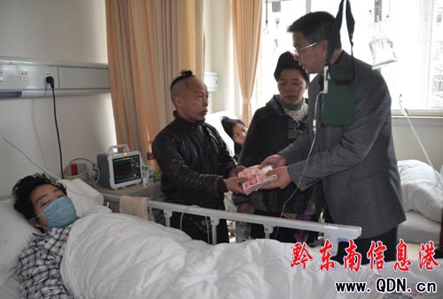 到目前為止,為治兒子的病,滾元亮已花光了所有的積蓄。他只得向從江縣民政部門求助。從江縣委、縣政府獲知消息,高度重視,責令有關部門在全縣范圍發出倡議,為滾吉元捐款。3月11日,從江縣民政局長趕到省醫滾吉元的病房,將部分慰問金和捐款交到了滾元亮的手中。
