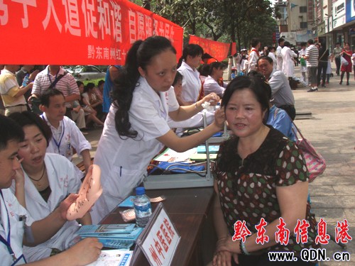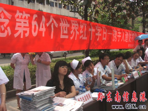 5月8日,是第64個(gè)世界紅十字日,為隆重紀(jì)念這一節(jié)日,省紅十字會(huì),州人民醫(yī)院、貴醫(yī)二附院、州中心血站,州中醫(yī)院等州級(jí)9家醫(yī)療單位在州中行門(mén)前舉行了,以發(fā)放宣傳資料,宣傳展版,義診資詢(xún)等多種形勢(shì)的宣傳活動(dòng),州紅十字常務(wù)副會(huì)長(zhǎng)李潤(rùn)英,副會(huì)長(zhǎng)兼秘書(shū)長(zhǎng)宴志及9家醫(yī)療單位的負(fù)責(zé)人到現(xiàn)場(chǎng)參加了宣傳活動(dòng)。今年紅十字宣傳主題是“攜手人道促和協(xié),自愿服務(wù)為民生”。