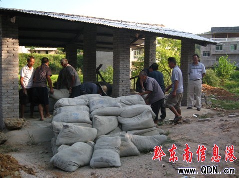 圖為村民搬運幫扶5噸水泥現場