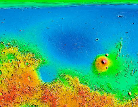 最新研究顯示,特大小行星碰撞導致火星磁場消失。如圖是烏托邦隕坑,其直徑為3.3公里,形成于41億年前,科學家推測該隕坑是第五次小行星碰撞形成的,火星磁場也是從此消失。