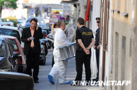 5月24日,奧地利警察在首都維也納發生槍擊事件的錫克寺附近執勤。