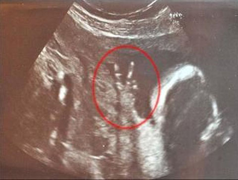 小嬰兒在英國媽媽肚里比出V字勝利手勢(圖)