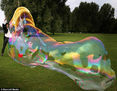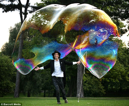 英國牛人吹出世界最大肥皂泡 創(chuàng)新紀(jì)錄(圖)