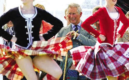 報道稱,日前查爾斯首次在妻子卡米拉陪同下,到蘇格蘭北部高地出席貴族競技賽。活動上,有女舞蹈演員起舞助興,舞動時揚起了蘇格蘭裙露出黑色內(nèi)褲和美腿,查爾斯看見后,一邊微笑一邊緊盯。