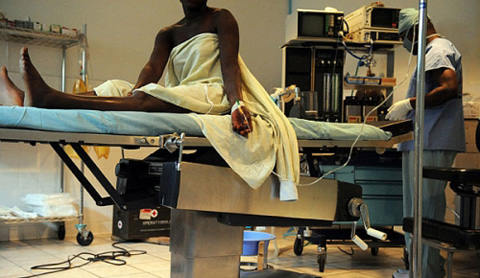 新華網(wǎng)消息 2009年8月11日,在剛果(金)東部北基伍省省會(huì)戈馬,一位遭到強(qiáng)奸的婦女坐在病床上等待接受手術(shù)。設(shè)在這里的“拯救非洲(Heal Africa)”診所,接診的大部分病例都與性暴力犯罪有關(guān)。根據(jù)聯(lián)合國(guó)的統(tǒng)計(jì)數(shù)字,今年以來,已經(jīng)有大約3500名婦女遭到強(qiáng)奸。