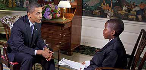 奧巴馬接受11歲學生采訪險被問倒(圖)
