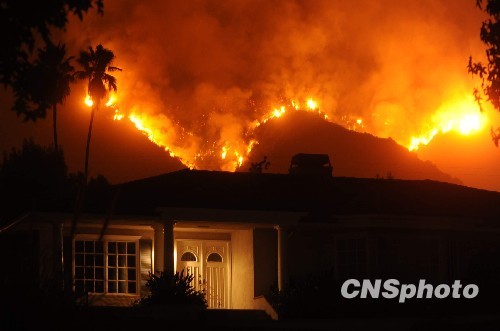 據(jù)中新網(wǎng)消息 高溫干熱天氣連日來(lái)引發(fā)洛杉磯市周邊地區(qū)多處山火,過(guò)火面積已超過(guò)一萬(wàn)英畝,數(shù)千居民被迫撤離。加州州長(zhǎng)施瓦辛格二十八日宣布洛杉磯縣進(jìn)入緊急狀況!