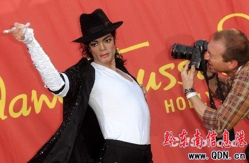 當地時間八月二十七日,一尊惟妙惟肖的“流行天王”邁克爾·杰克遜的蠟像在好萊塢杜莎夫人蠟像館正式揭幕。這尊蠟像由杜莎夫人蠟像館倫敦工作室制作,耗資三十萬美元。再過兩天就是邁克爾·杰克遜的五十一歲生日。主辦方希望新蠟像將為這座新落成的蠟像館帶來人氣。 中新社發 張煒 攝