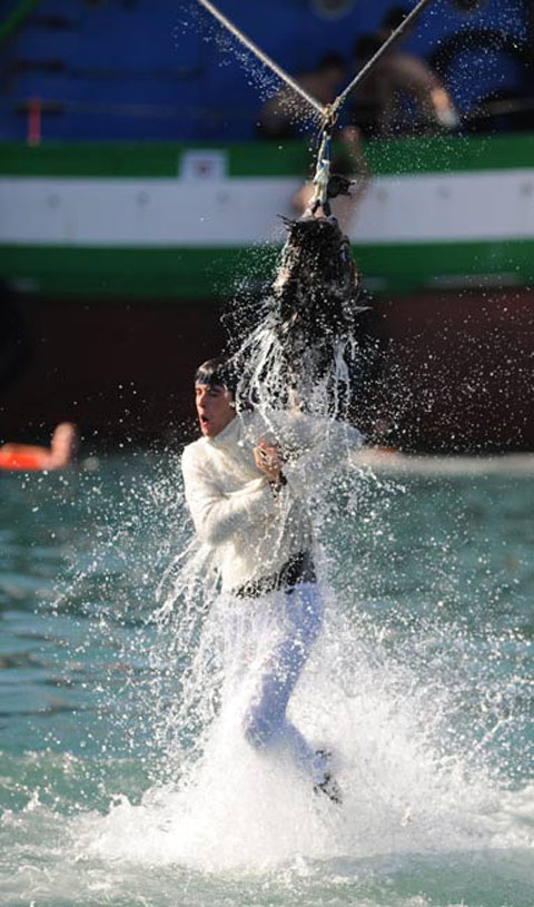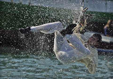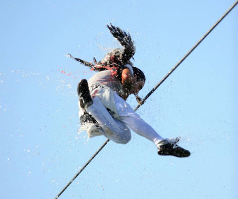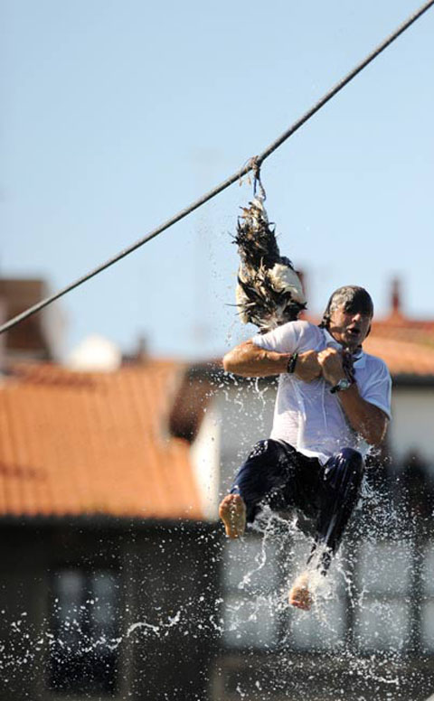 9月6日,西班牙巴斯克地區舉行傳統“鵝日”活動。人們用繩子將一些死鵝吊在空中,狂歡者跳起猛扯鵝頭,看誰能取下。