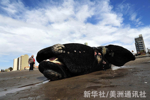 阿根廷:鯨魚在海灘擱淺死亡(圖)