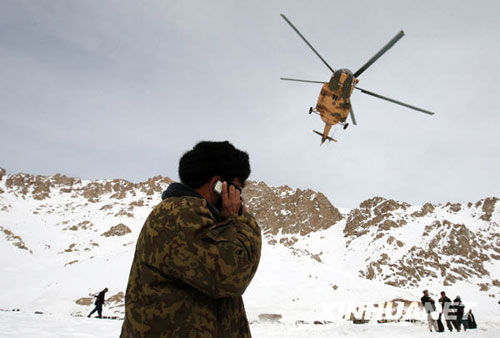 2月10日,救援人員在阿富汗北部帕爾萬省薩朗山口進行搜救。