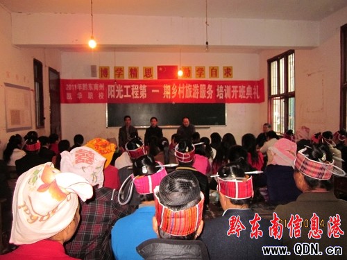 為充分利用以“農家樂”為主體的鄉村旅游資源,拓寬農民增收渠道。10月24日,黔東南州陽光工程辦、黔東南州凱華職校及劍河縣旅游、農業等部門聯合在劍河溫泉村舉辦鄉村旅游服務培訓班,來自溫泉村群眾及農家樂從業人員60人將參加為期7天的鄉村旅游服務培訓。
