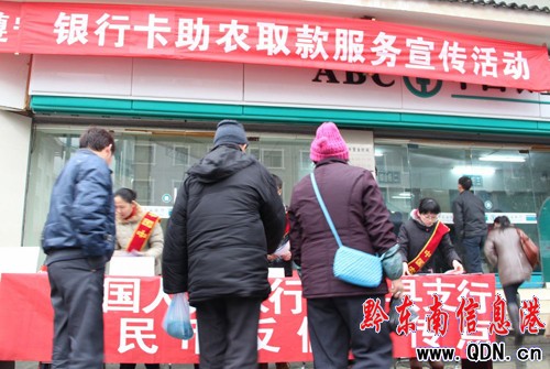 為了把中央支農惠農政策落到實處,解決進城務工農民攜帶現金不便、回鄉就地取款難等問題,更好地為農民工銀行卡助農服務,逐步將中國銀聯網絡連接到各農村農信社和郵儲銀行網點,使農村居民用任何一張借記卡都可以在家門口取到錢和用款。2月21日逢縣城趕場,由劍河縣人民銀行牽頭,各金融部門聯合組織在街上開展銀行卡助農取款服務的宣傳活動。來趕場的農民群眾和市民紛紛前來咨詢,銀行工作人員都一邊激情做宣傳,耐心解釋,一邊散發宣傳資料,忙過不停,宣傳臺前人頭攢動,氣氛高漲。活動當日,前來咨詢2000余人(次),解答問題210個,發放銀行卡助農宣傳資料3100份,起到很好的宣傳效果。