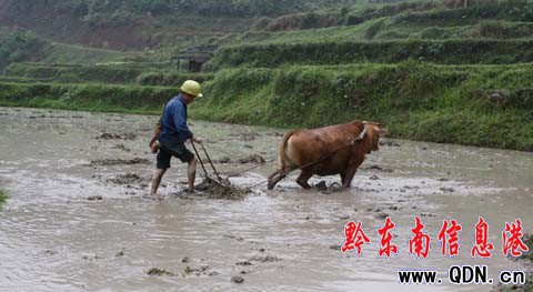 本港訊 (通訊員 姜巨標(biāo) 攝影報道)5月8日,貴州省錦屏縣啟蒙鎮(zhèn)華洞村低丘田上一農(nóng)民正值雨后搶水忙春耕。受來自印度洋濕潤氣候的影響,給江南地區(qū)云貴高原上的貴州省帶來了大范圍的降雨,黔東南地區(qū)的農(nóng)民把住“喜雨”之時,搶水忙在旱田春耕,讓在大旱年莊稼收成不減產(chǎn)、增收。