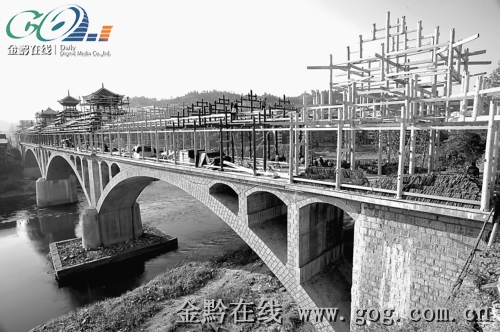 風雨橋木架結構系由有豐富鼓樓、風雨橋建設經驗的貴州省黎平侗人古建責任有限公司承建的,工程預計于元旦節前全部完工。