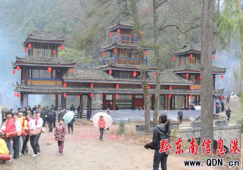 本港訊 (陸應福 攝影報道)2011年元旦,錦屏縣固本鄉錦額花橋裝扮一新,來自周邊鄉鎮、村寨的群眾聚集在這里隆重慶祝錦額花橋順利落成,以獨特的形式慶祝新的一年到來。固本鄉錦額花橋始建于1864年,由于年久失修,該建筑損毀十分嚴重。錦額村于2006年開始重建工作,2010年12月底竣工,共投入建設資金20.5萬元。該項目的建成將進一步傳承和保護民間文化,豐富群眾文化生活。