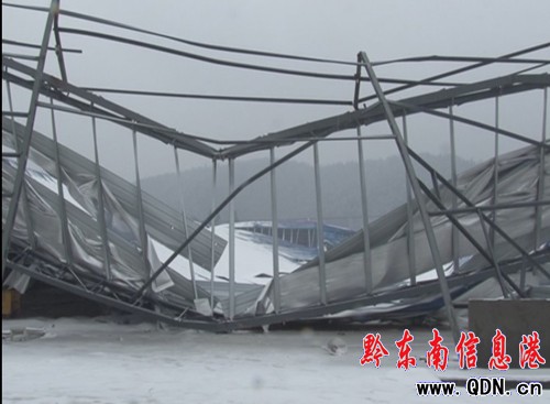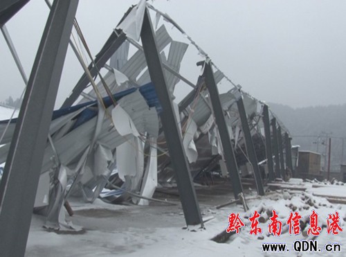 錦屏卦治工業園區廠房被積雪壓垮 損失500多萬