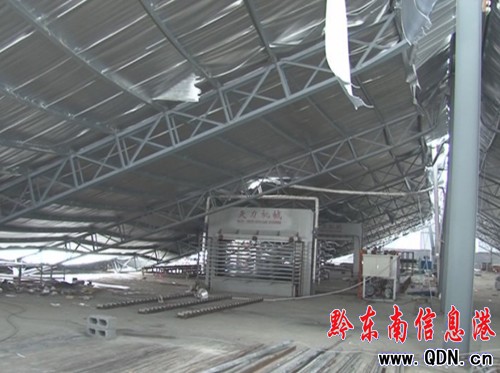 據了解,卦治工業園區內6家木材加工企業是錦屏縣2010年招商引資進來的外地企業,目前生產設備等都已經配置到位,計劃在2011年元宵節開工生產,但這次雪災給他們帶來了無法挽回的損失。據統計,這次垮塌共造成了多家廠房被大雪壓垮,其中貴州鴻輝木業科技有限公司的廠棚全部垮塌,倒塌面積達14000多平方米,損失達450萬元。其中500多萬元的生產設備中有2臺拼板機、3臺散板機、1臺進口砂光機、1臺叉車、3臺運輸車輛和2臺電動車被垮塌鋼筋大梁砸毀,目前損失暫時無法統計,所幸無人員受傷。