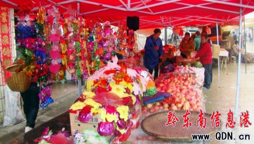 圖為該縣鐘靈鄉(xiāng)集貿(mào)市場(chǎng)的一個(gè)售花攤點(diǎn)