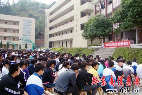 主題報告氣氛熱烈,全體學生心靈受到啟迪,從而激發出他們感恩共產黨之情懷,努力學習報效祖國的決心,受到全體師生的熱烈歡迎。圖為錦屏縣關工委“學黨史頌黨恩 跟黨走”主題教育報告巡回宣講小組正在鐘靈中學進行宣講時的的情景。(李斌)