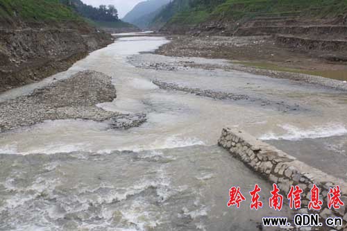 錦屏人工增雨后固本鄉(xiāng)境內(nèi)烏下江水位上漲的景象。