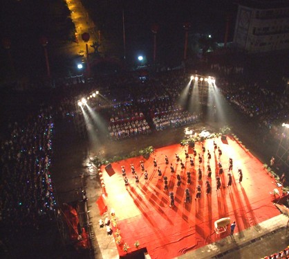 晚上8:00,縣民中為專家們的到來舉辦了“苗疆神韻”歡迎晚會。晚會在震動人心的木鼓聲中拉開序幕,共分為三個篇章:第一篇章——“歡聚民中,多彩校園”;第二篇章——“青春流韻,和諧校園”;第三篇章——“舞動未來,放飛希望”。省教科所的孫茂華老師被學(xué)生動聽的歌聲、優(yōu)美的舞姿所感染,忍不住上臺高歌一曲。最后一個節(jié)目由縣民中張玲和曲凱慧兩位老師合唱一首《和諧大家庭》,將晚會的氣氛推如至頂峰。最后,專家們上臺與學(xué)生一起跳起歡快的蘆笙舞,晚會在一片歡歌笑語中圓滿結(jié)束。