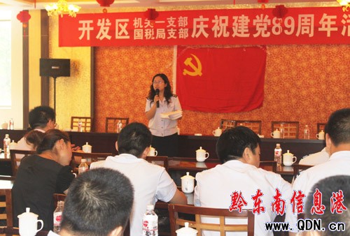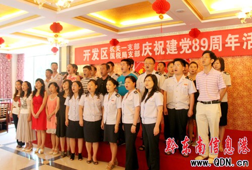 本港訊 (汪燕)為了增強黨的凝聚力,激勵廣大黨員的愛國參黨熱情。開發區機關一支部和國稅局支部聯合舉行了豐富多彩的“慶七一”活動,以實際行動向黨的89周年生日獻禮。