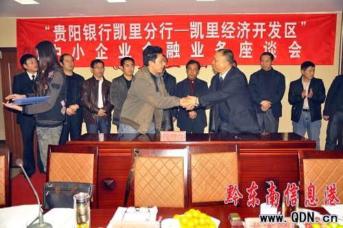 為切實改變企業難貸款、貸款難局面,有效解決企業在生產周轉、技改升級和改擴建等方面的資金需求,促進凱里經濟開發區經濟社會快速發展,2011年3月19日,凱里經濟開發區和貴陽銀行凱里分行舉行中小企業金融業務座談會,區工委副書記、管委主任唐有祥,貴陽銀行凱里分行行長龍本榮,州政府金融辦副主任張慶發,信元擔保公司總經理楊春勇等領導及明鑫、中泰、黃帝、一統生態產業(集團)等30余家企業負責人出席會議,會議由區工委副書記、管委副主任羅杰主持。
