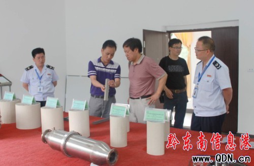 州國(guó)稅局鐘方軍副局長(zhǎng)一行在開(kāi)發(fā)區(qū)局國(guó)稅局龍堅(jiān)局長(zhǎng)的陪同下,到開(kāi)發(fā)區(qū)黃帝車輛凈化器有限公司了解該企業(yè)的生產(chǎn)經(jīng)營(yíng)情況,圖為該公司總經(jīng)理介紹該產(chǎn)品的生產(chǎn)工序及職能、作用。
