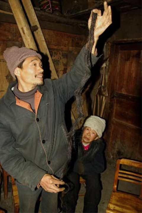 中華網消息 湖北神農架多年來因“野人”傳說聞名遐邇,神秘莫測。村民近日在當地發現奇異毛狀物,懷疑是“野人毛”。經專家鑒定,可疑毛發是一種罕見菌類,系首次在神農架發現。