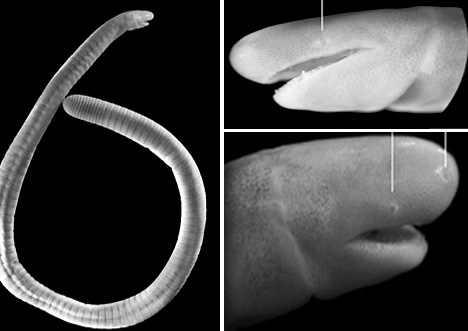 最近,研究人員在圭亞那發現了一種長相怪異的蠕蟲,該物種被認為是迄今為止所發現的第二種肺蚓螈。這種無肺蚓螈是兩棲生物的一種,看起來很像巨型蠕蟲或是蛇類,被命名為“Caecilita iwokramae”。它們沒有鼻孔,沒有肺,也沒有腿,主要依靠皮膚呼吸氧氣。這種無肺蚓螈與第一種無肺蚓螈存在很大差異,它們最長可以長到27.5英寸(約合69.9厘米),主要生活于水中,而第一種無肺蚓螈體形則比較小,大約只有4.4英寸(約合11.2厘米)長,主要生活于陸地之上。第一種無肺蚓螈發現于1995年。此外,研究人員還于2008年發現了一種微型無肺青蛙。據研究人員介紹,這種無肺的特征通常出現于一些小型動物身上。這些小型動物身上的皮膚區域會隨著體重的增加而增加,這樣它們就更容易呼吸氧氣。