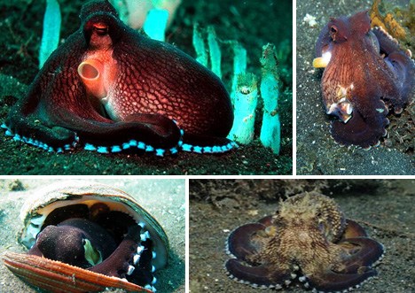 最新研究發現,脈紋章魚對椰殼總是情有獨鐘。更明確地說,這些章魚喜歡利用椰殼作為它們的庇護所。它們身體躲在椰殼底下,伸出6英寸(約合15.2厘米)長的觸角支撐起整個椰殼。更為有趣的是,它們頂著椰殼在滿是泥沙的海底躡手躡腳地行走,好像是在踩高蹺。據研究人員介紹,盡管攜帶椰殼會讓它們行動緩慢,但是它們在遇到攻擊時至少有個藏身之所。