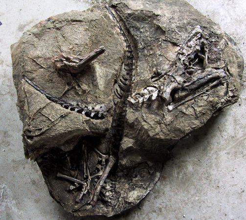 照片展示的小泥潭龍骨骼化石是在2001年發現的。類似泥潭龍這樣的小型獸腳類恐龍體重在40至50磅(約合18至22.6公斤)之間,很容易陷入龍馬門溪龍大腳印形成的泥坑中。研究論文聯合執筆人埃伯斯表示,獸腳類恐龍尤其難于逃脫,拼命掙扎仍難逃一死,因為這種恐龍只能利用它們的后腿移動身體。