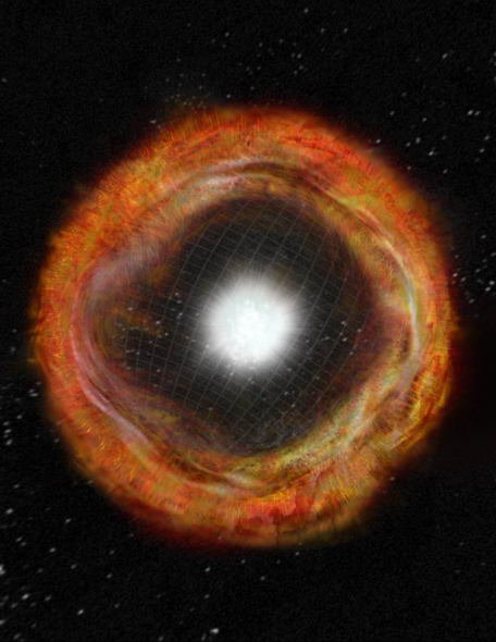 內核崩塌超新星爆炸向外驅逐物質,會產生一種近球形殘骸外殼