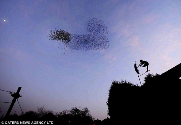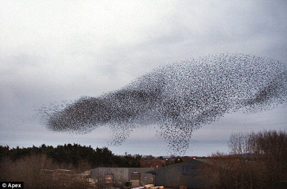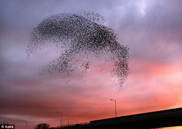 英國數(shù)千椋鳥群飛奇觀:隊形酷似烏龜鴨子(圖)