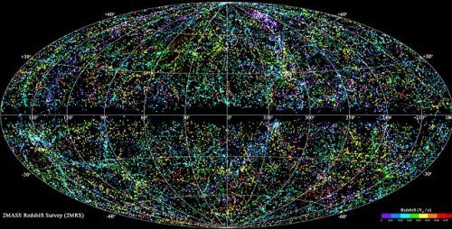 據報道,這份英國普茲茅斯大學的MASS紅移巡天圖(2MRS)廣度達到3.8億光年,歷時10年多測繪而成。這份星系圖比之前繪制的圖像更接近銀道面。