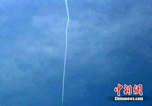 出現在天空的白色軌跡。中新網發 谷華 攝
