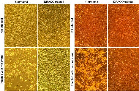 實驗室試驗發現,該藥會定向追蹤感染細胞,讓它們自毀。這種名叫DRACO的藥物能治愈的疾病名單包括人鼻病毒(引起半數成人和幾乎所有兒童感冒的細菌)、流感、小兒麻痹癥、一種腸胃細菌和致命的革登熱。除此以外,它還有望治愈麻疹和風疹、唇皰疹、狂犬病,這種新藥可能會在10年內出現在藥店的貨架上。