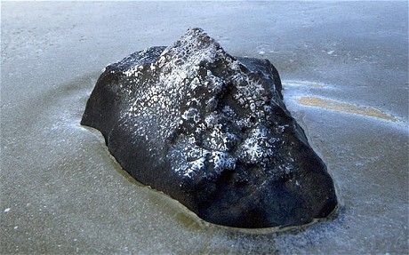 這是2008年11月28日在加拿大的一個池塘內發現的一塊隕石碎片
