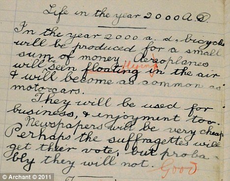 英學童百年前預言當代生活 飛機將普遍化(圖)