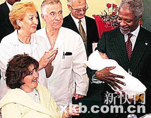 第60億個人是于1999年10月12日凌晨0時2分誕生的一名男嬰,地點在在波黑首都薩拉熱窩。時任聯合國秘書長的安南(右一)還專程前往醫院看望這個男嬰。